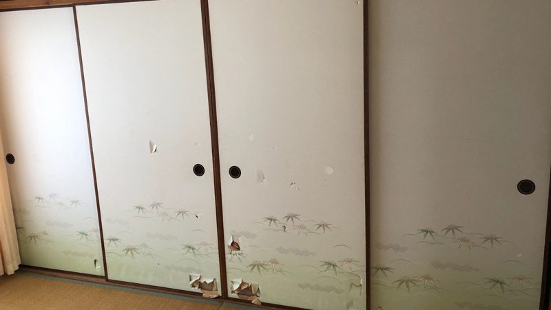 宇多津町 I様 襖張替え 社宅にお住まいしていた宇多津町のI様ですが転勤前にて修繕が必要とのことでご連絡をいただきました。 ご依頼頂いた修繕内容は10枚16面の襖張替えです。 一度お預かりして張り替えてから再度納品に伺いました。 BEFOUR 押入れ側 4面ともひどく破れていますが… AFTER 張替え後はこんなにキレイになりました。 BEFOUR 破れた部分ですが、古い襖となれば必ずといっていいほど穴が空きます。 AFTER もちろん全面張替えなのでバッチリ修繕できます。 BEFOUR これも古くなった襖によくある縁が割れた例です。 AFTER こちらは張替えとは別途のお見積もりになりますがこのようにキレイに直せます。 BEFOUR ひどく縁が割れてしまって、釘も効いていません。 AFTER ご安心ください!写真のとおり完全に修復できます。 2018年5月23日工事実績内装仕上げ工事,建具工事,襖張替え