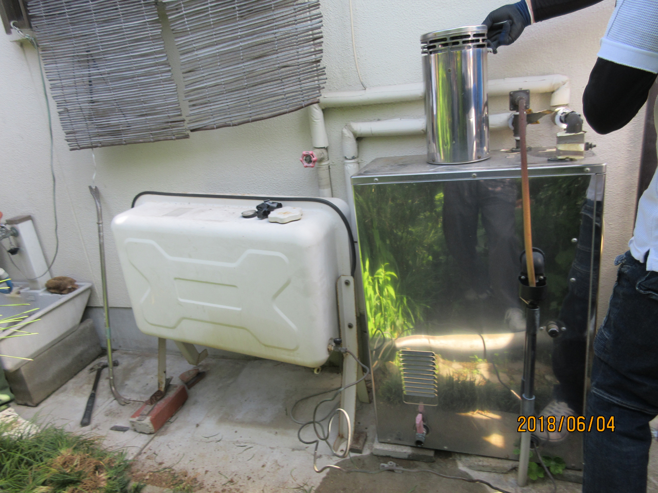 既存のボイラー給湯器の本体と燃料タンクを撤去します。