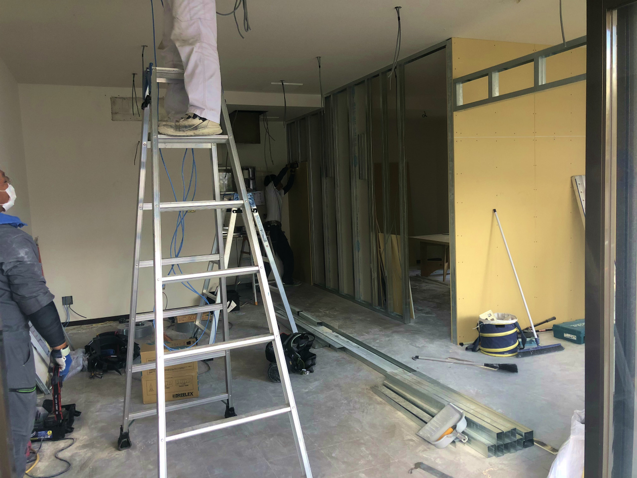 工期後半にて間仕切り壁にパーティションを取り付けしました。