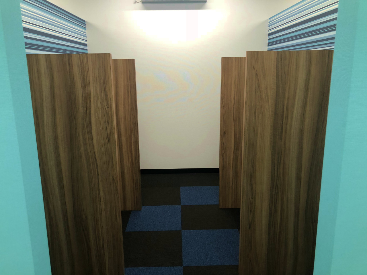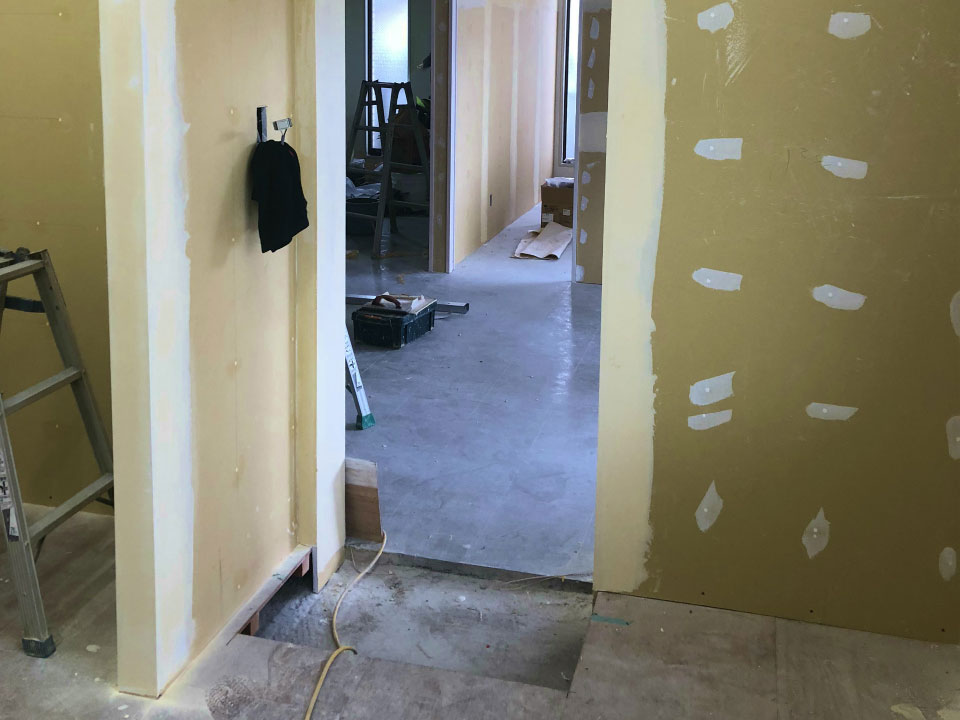 コンクリートブロック解体撤去と石膏ボードを貼り付けた後の通路部分です。