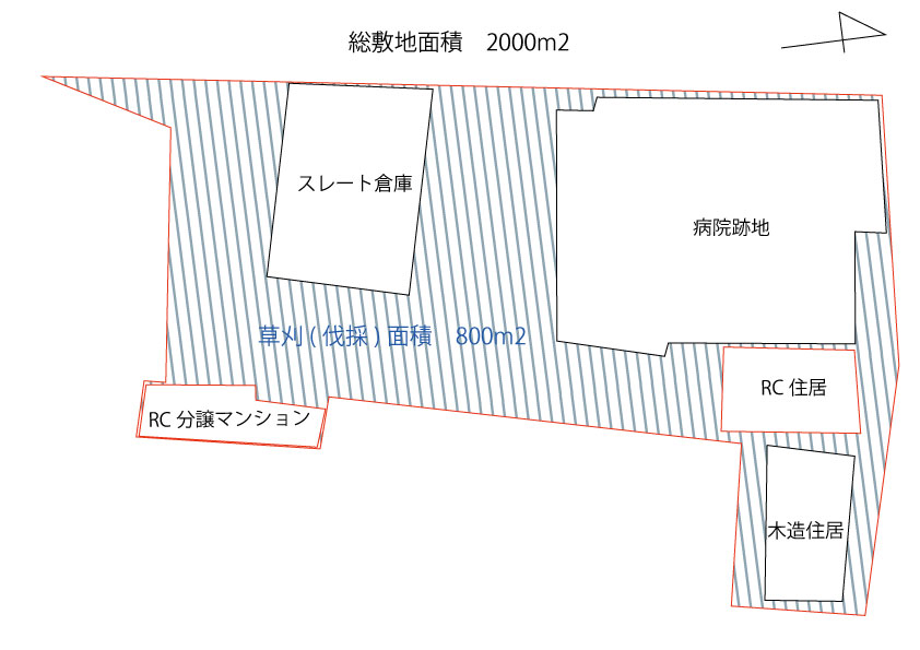 各所の草刈などのご指示いただいた面積の合計はおおよそ800m2超えでした。