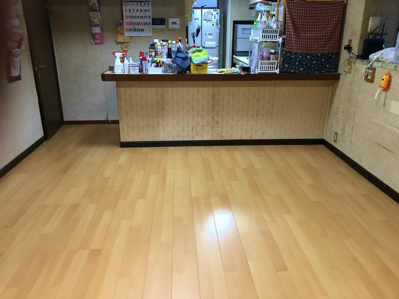 住宅購入時に廊下部分は増し張りを行いましたが、当時の業者さんがリビングとキッチン部分は上張り出来なかったそうで今回当社でのの施工になりました。