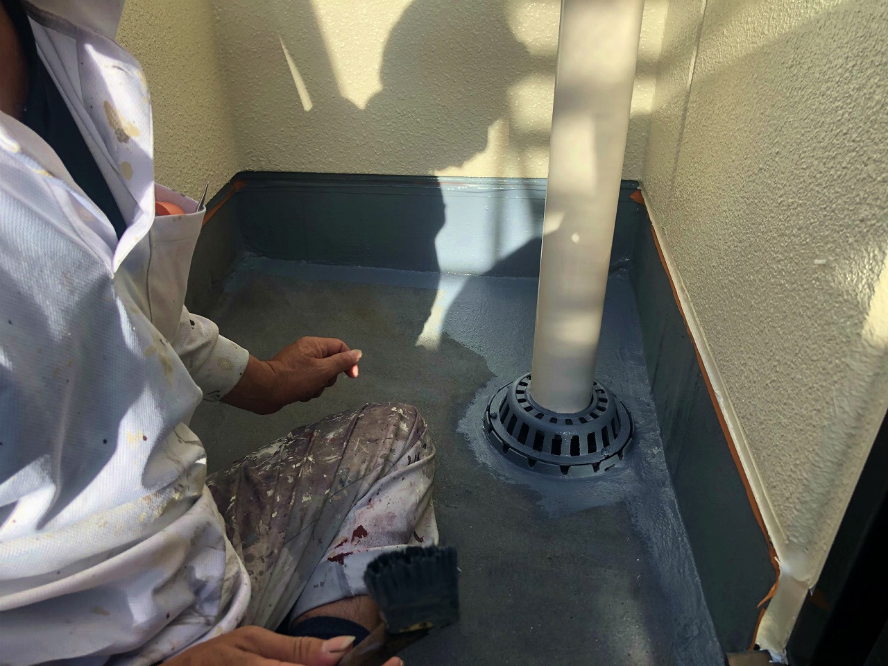 その後、専用の防水塗料にて塗膜防水処理をいたしました。