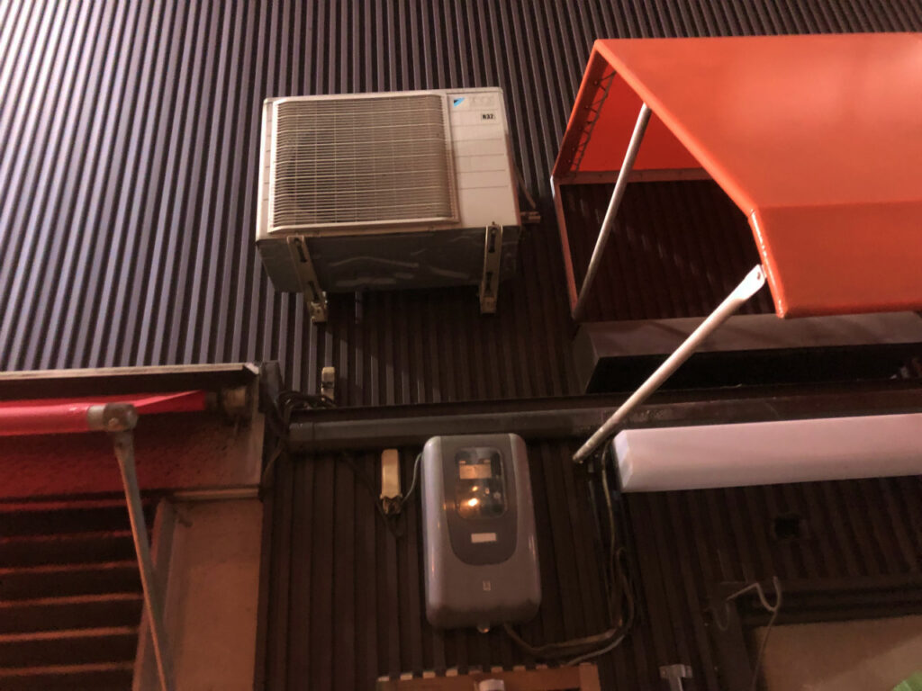 まず最初に以前の室外機を下します。なんと50kg超えの重量級の室外機です。