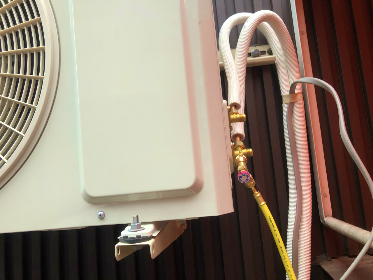 冷媒ガスの通るペアコイル内の真空引きを行います。