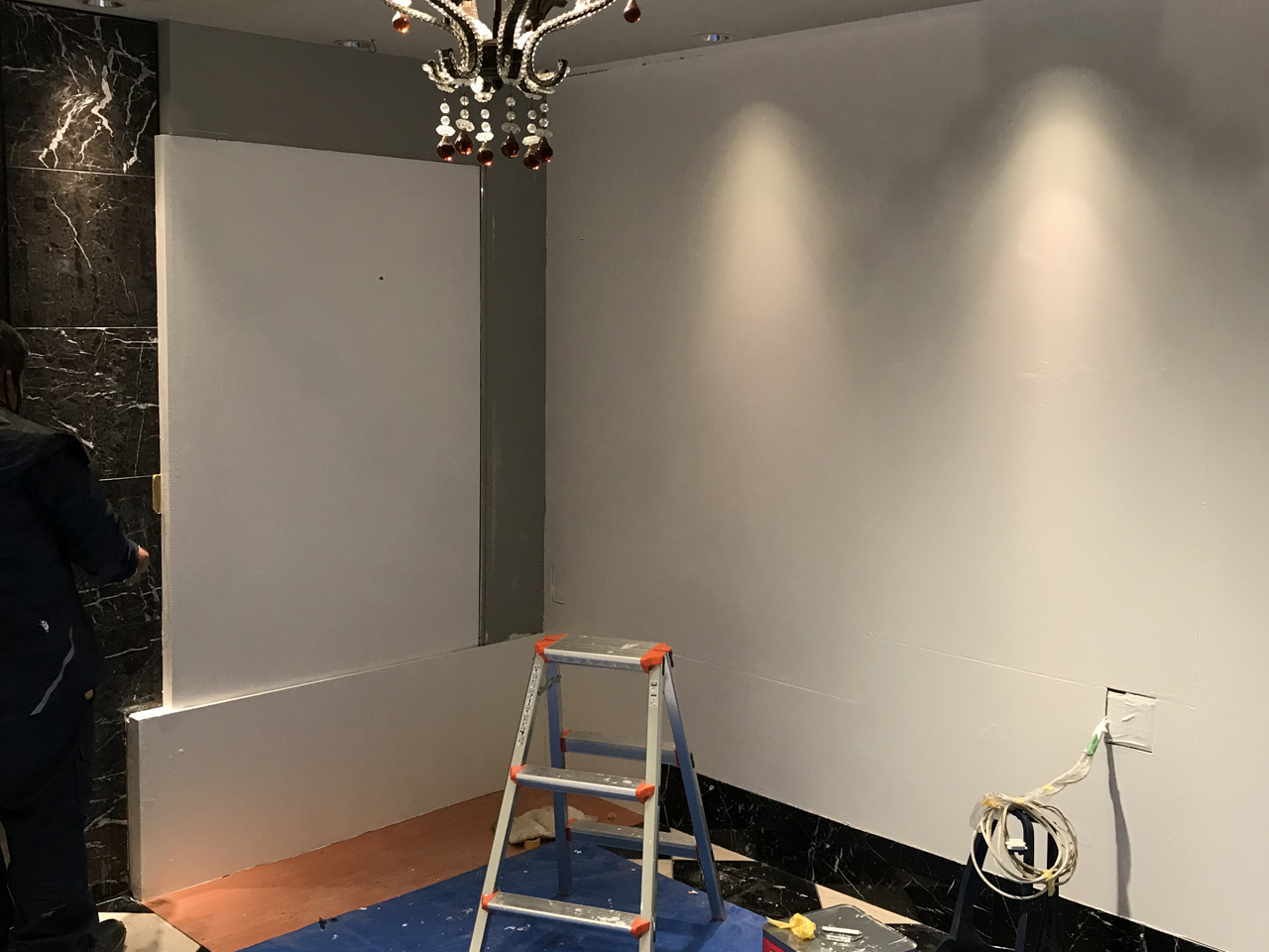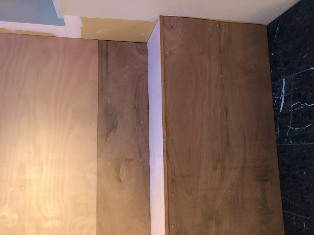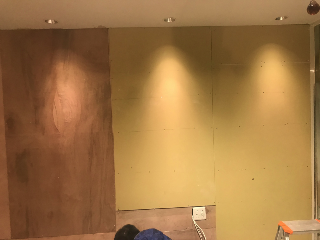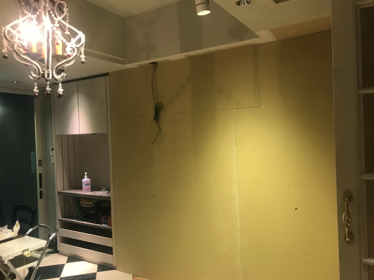 ベニヤ板で壁をおこしていましたがベニヤ板の板厚が薄く不陸が大きい為、急遽石膏ボードを追加で貼ることになりました。