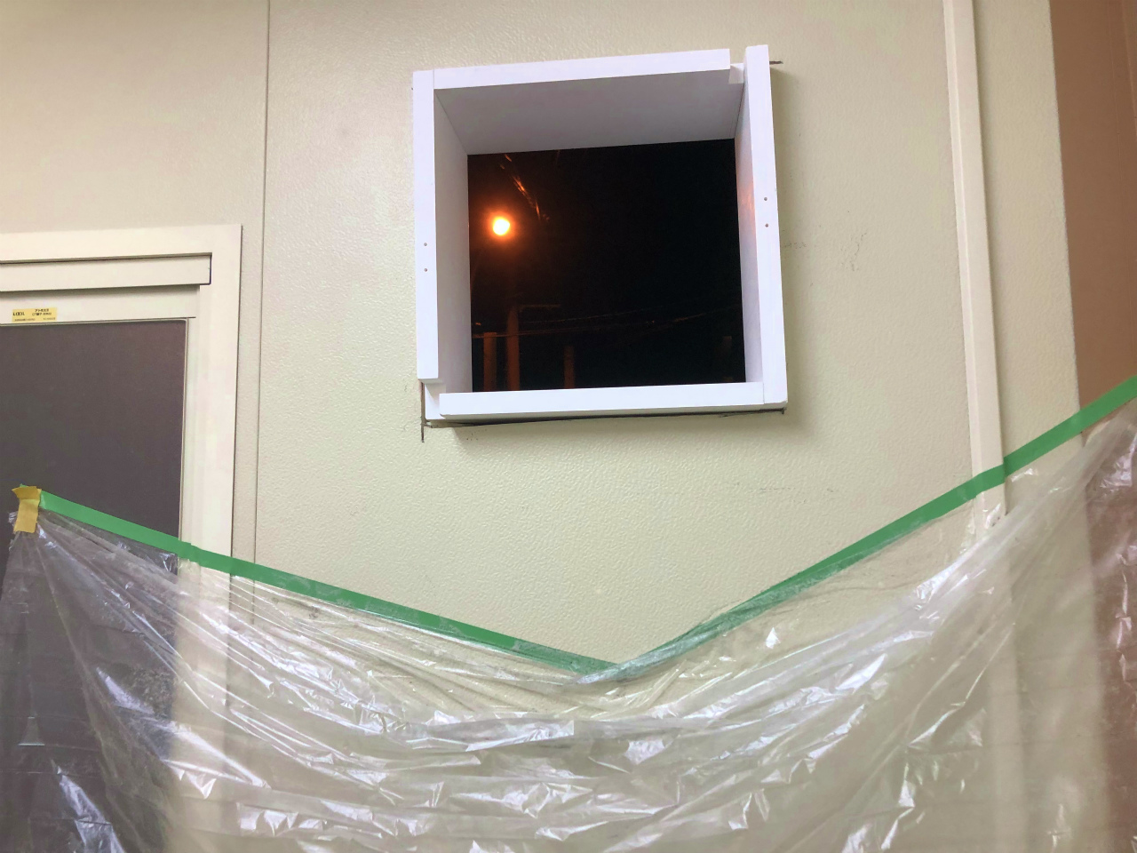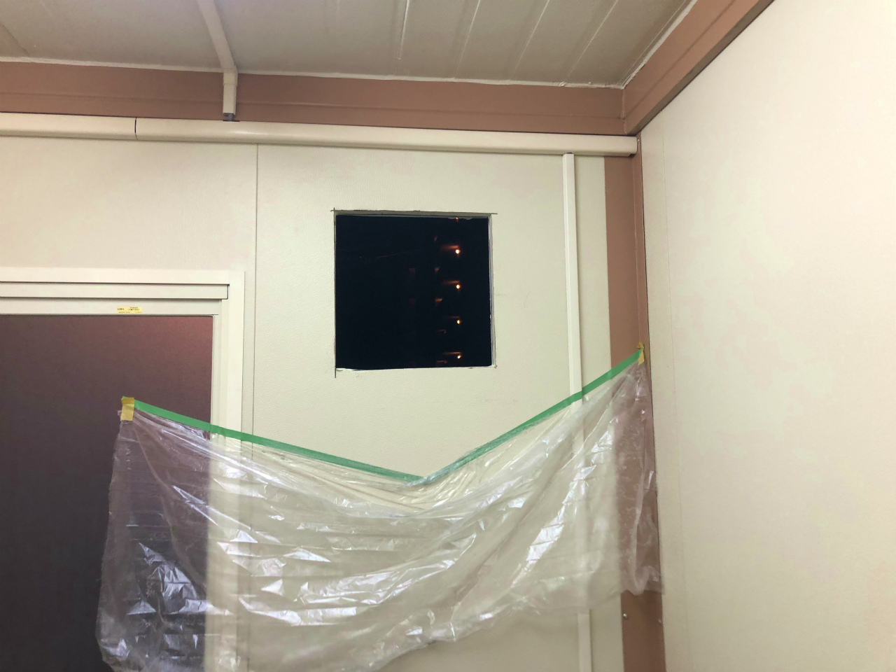 プレハブ壁に開口して新規に換気扇を取り付けます。