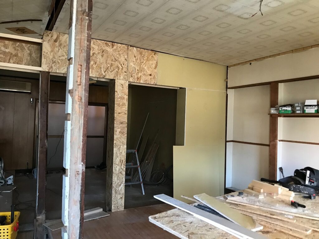 こちらは土壁だった部分の間仕切り壁を造作していきます。