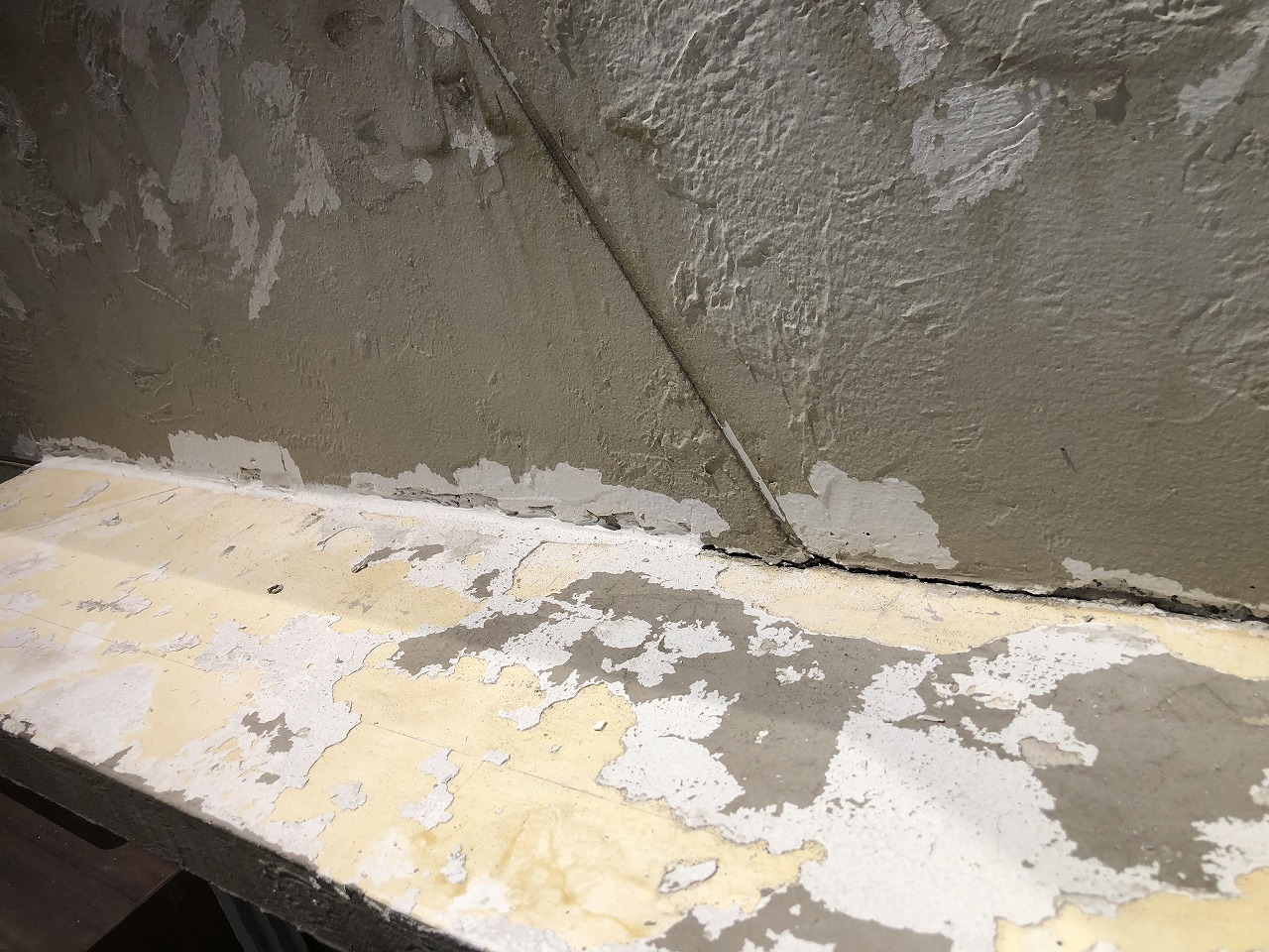 壁地が深く傷んでいるところがありましたので壁面文字の補修と合わせて編成シリコンで補修します。