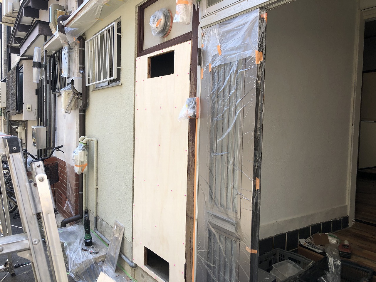 鉄部の錆止めと仕上げ塗りをしている間に前面の扉の改修をします。