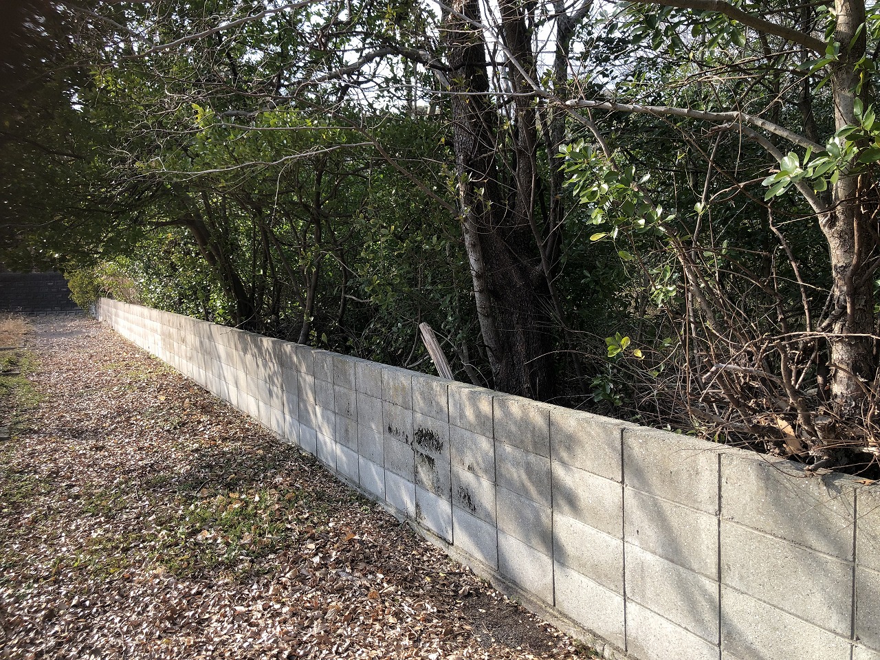 境界ブロック塀に沿って幹径60~80cm程度の木が生えていました。