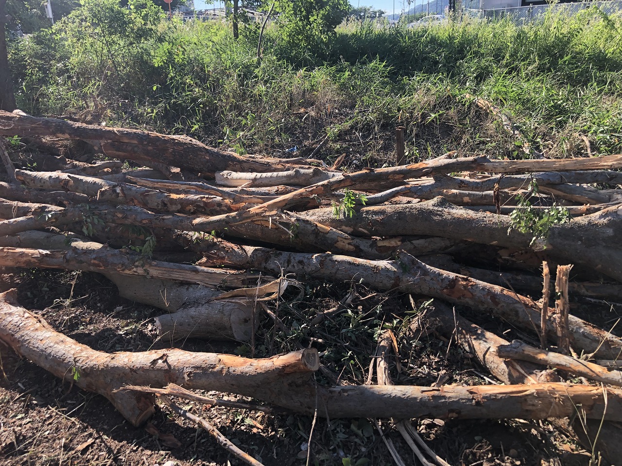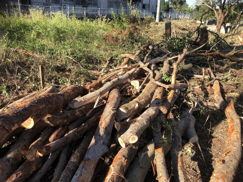 写真のような幹径が太い木は処分するのではなく再資源化を行うため別途分けています。