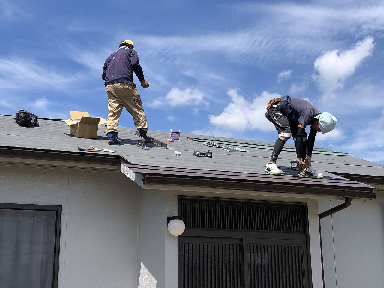コロニアル瓦が少し傷んでいたものの、下地材等はしっかりしており上からカバーする分には十分な状態でした。