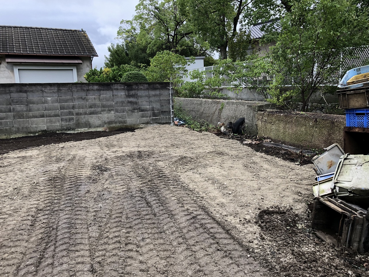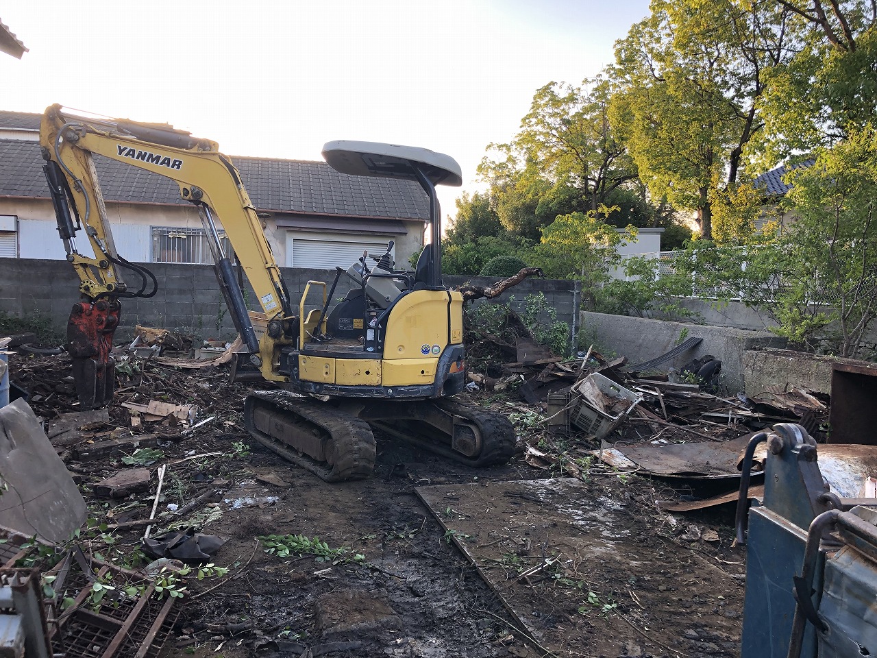 今回はさぬき市のお施主様より所有地内に40年以上手つかずの部分に桐の木が2本あり、伐採・伐根するのとその周辺に色々な不用品やスクラップが埋設されているそうでこれらの撤去とできれば地盤が下がっていて雨水が溜まるのでクラッシャーを敷設して地盤も上げてほしいとのご依頼でした。