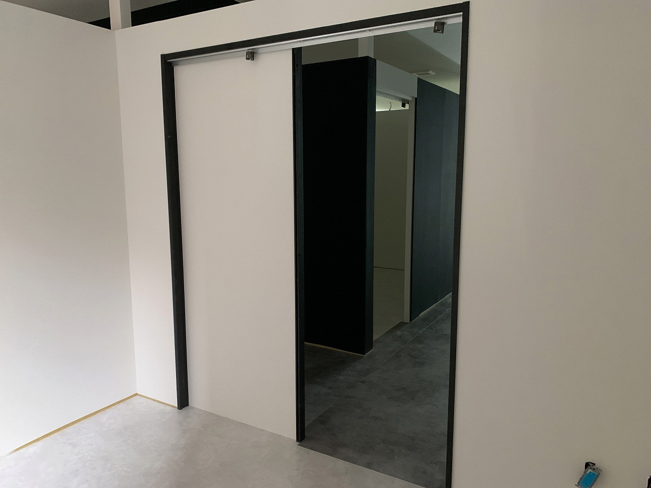 ご依頼の内容は工期が遅れており、内装の建具(引き戸や鏡、見切り金物やパーティション等)の取り付けを行ってほしいとのごいらいでした。