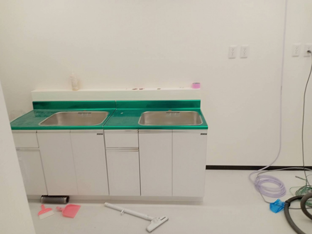 工程的には受付カウンター前で一番出入りがおおく各業種の作業が終わる一番最後に付け替えをしました。