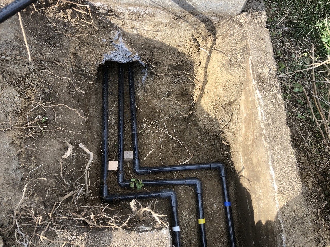 掘削が終わった部分から随時配管をしていきます。