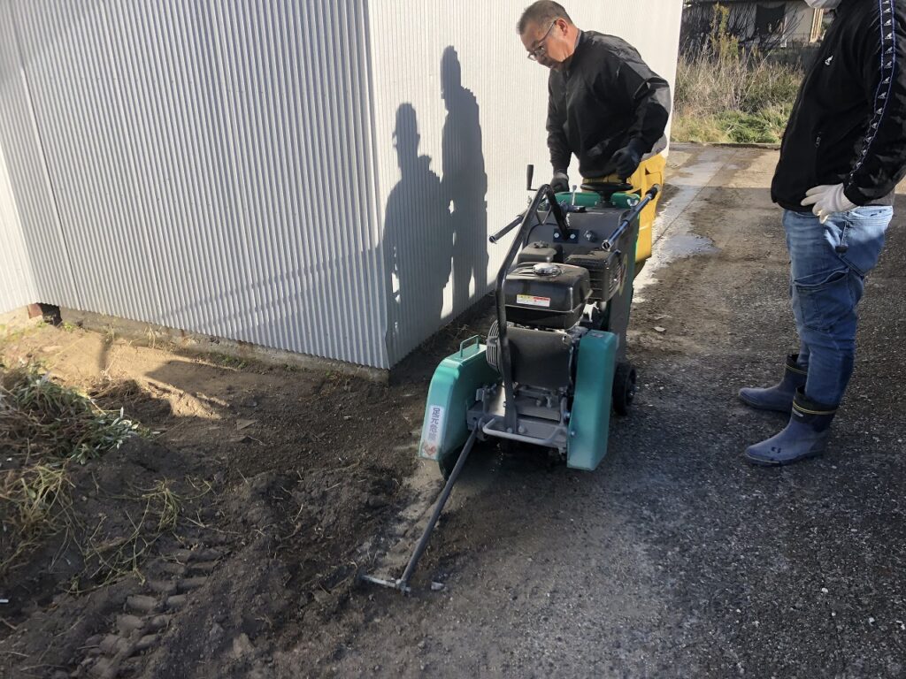 こちらは現在使用している給水管が別の境界外になる土地に入っているので境界内に引き込む為にコンクリートを切断していきます。