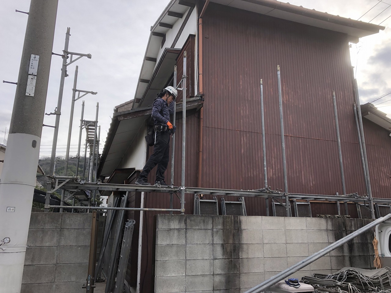 その後に足場を設置します。