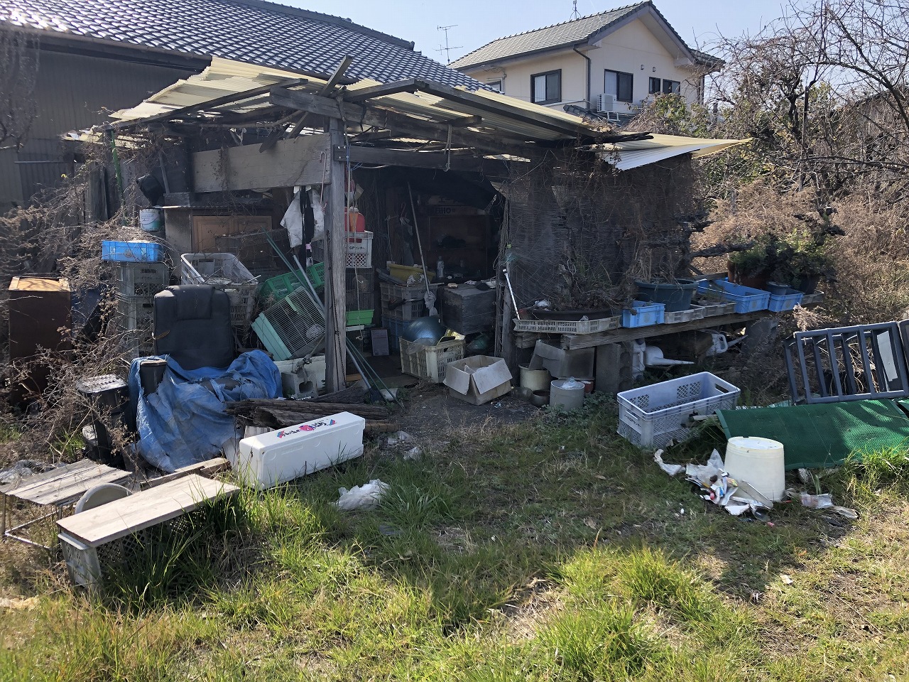 持ち主の方が自分で作られたような物置小屋に大量の不要品が残っていました。