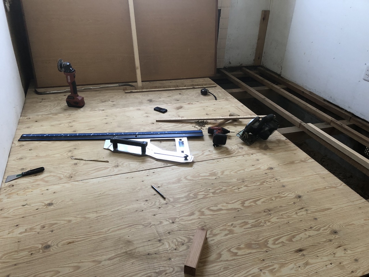 幸いに根太まだしっかりしており使用できそうなので根太の上に床材を新しく張り直します。