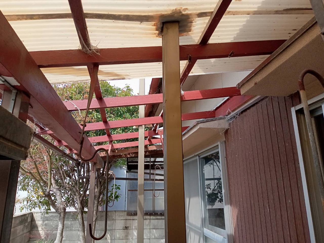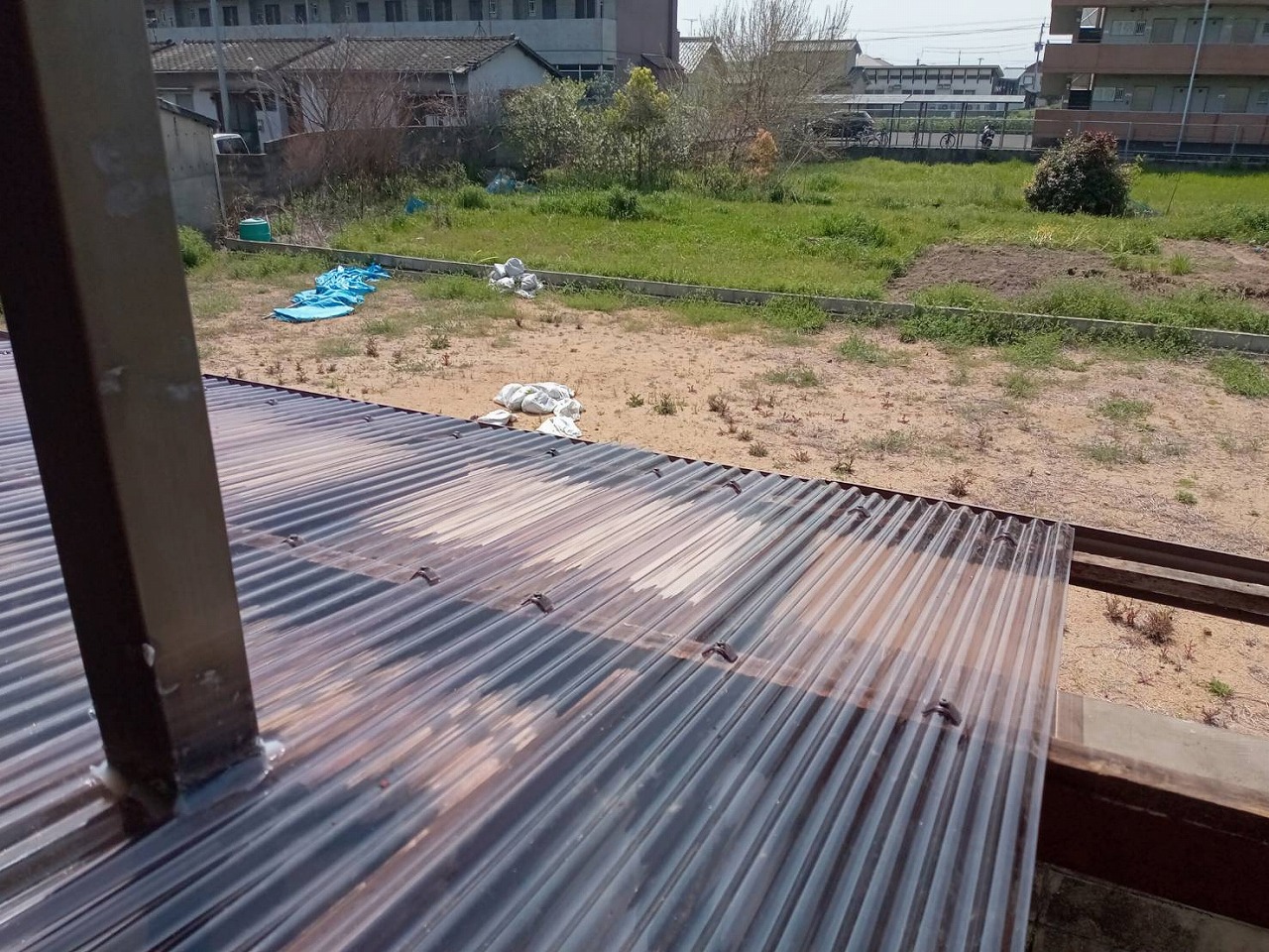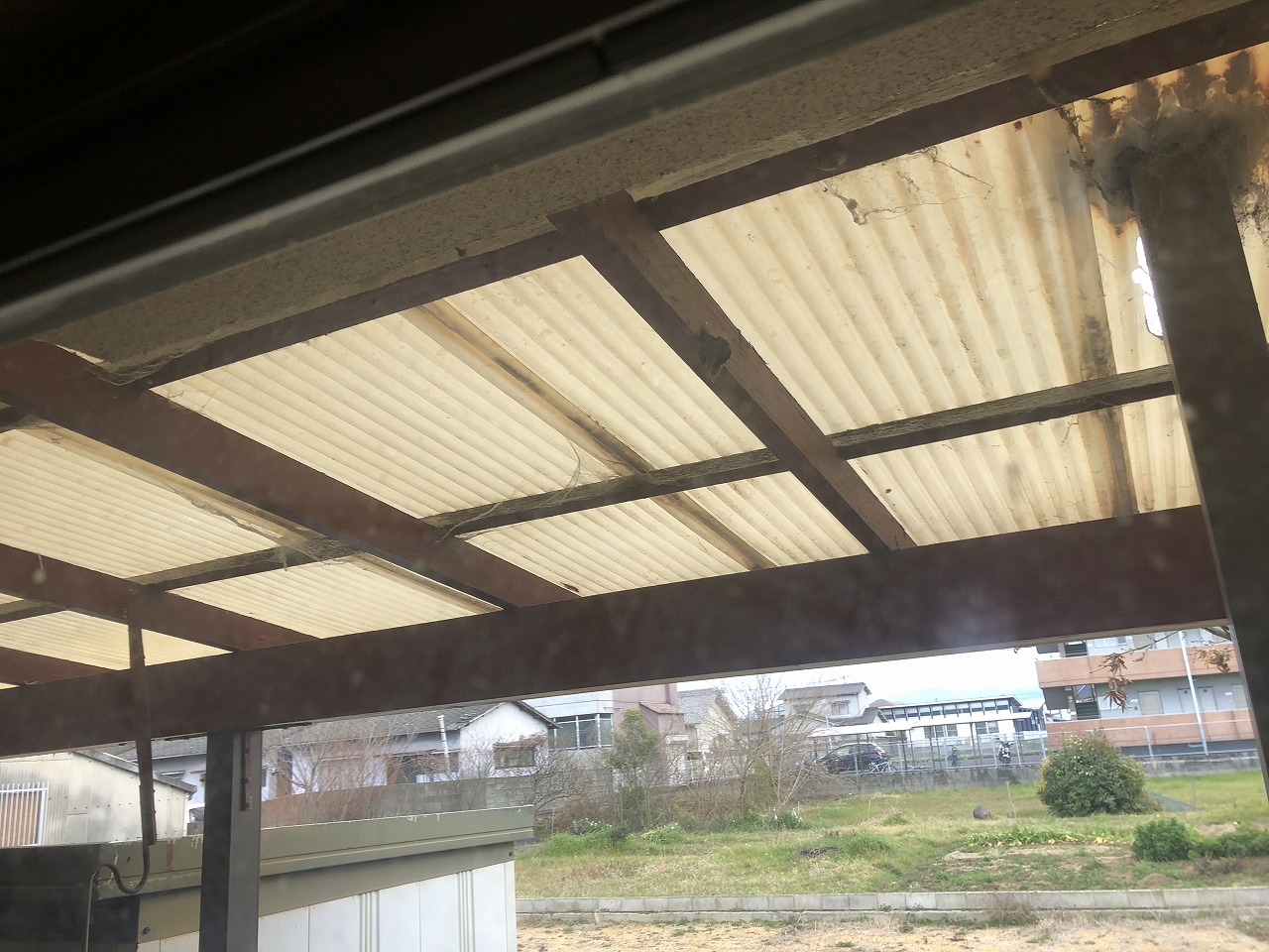 劣化して割れていました。こちらの波板もポリカ製の波板に張り替えていきます。