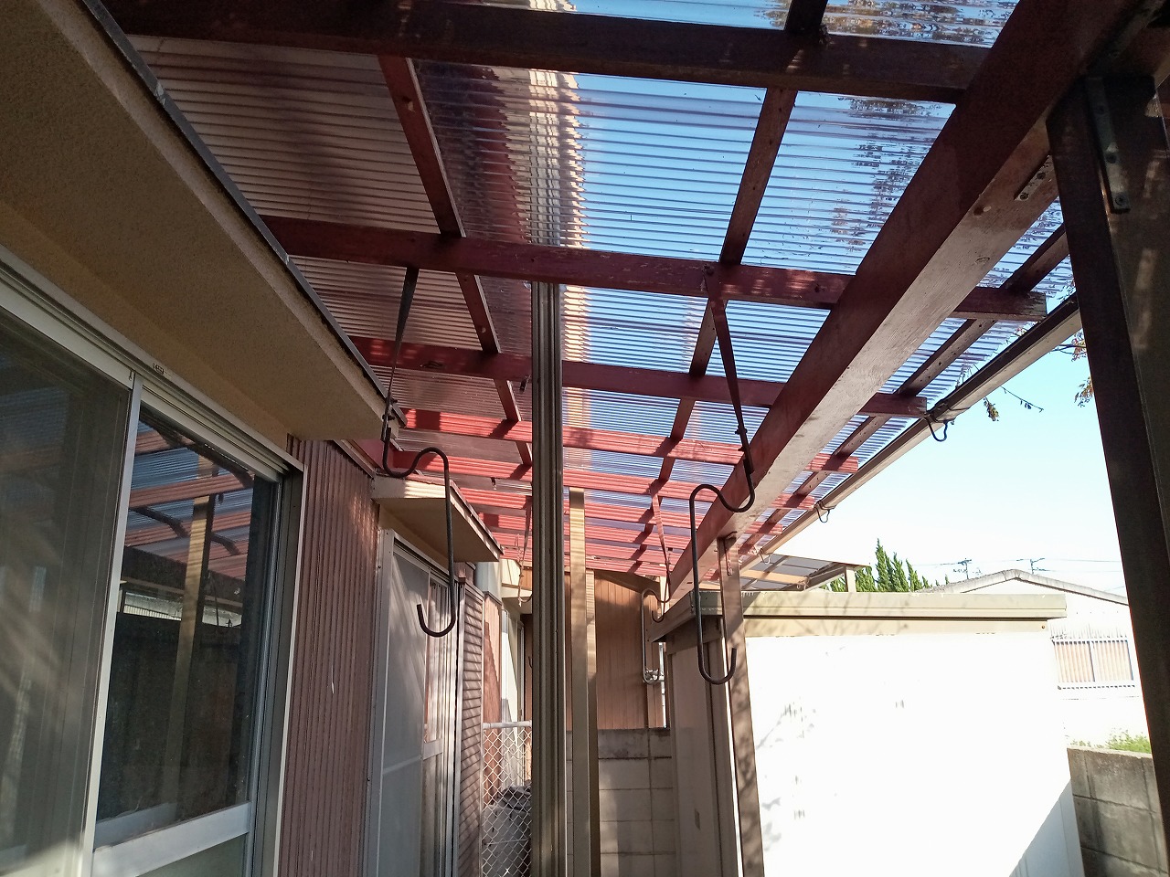 波板の張り換え完了です。強度があるポリカ波板で白っぽくなりにくいので見た目も実用度もGoodです。