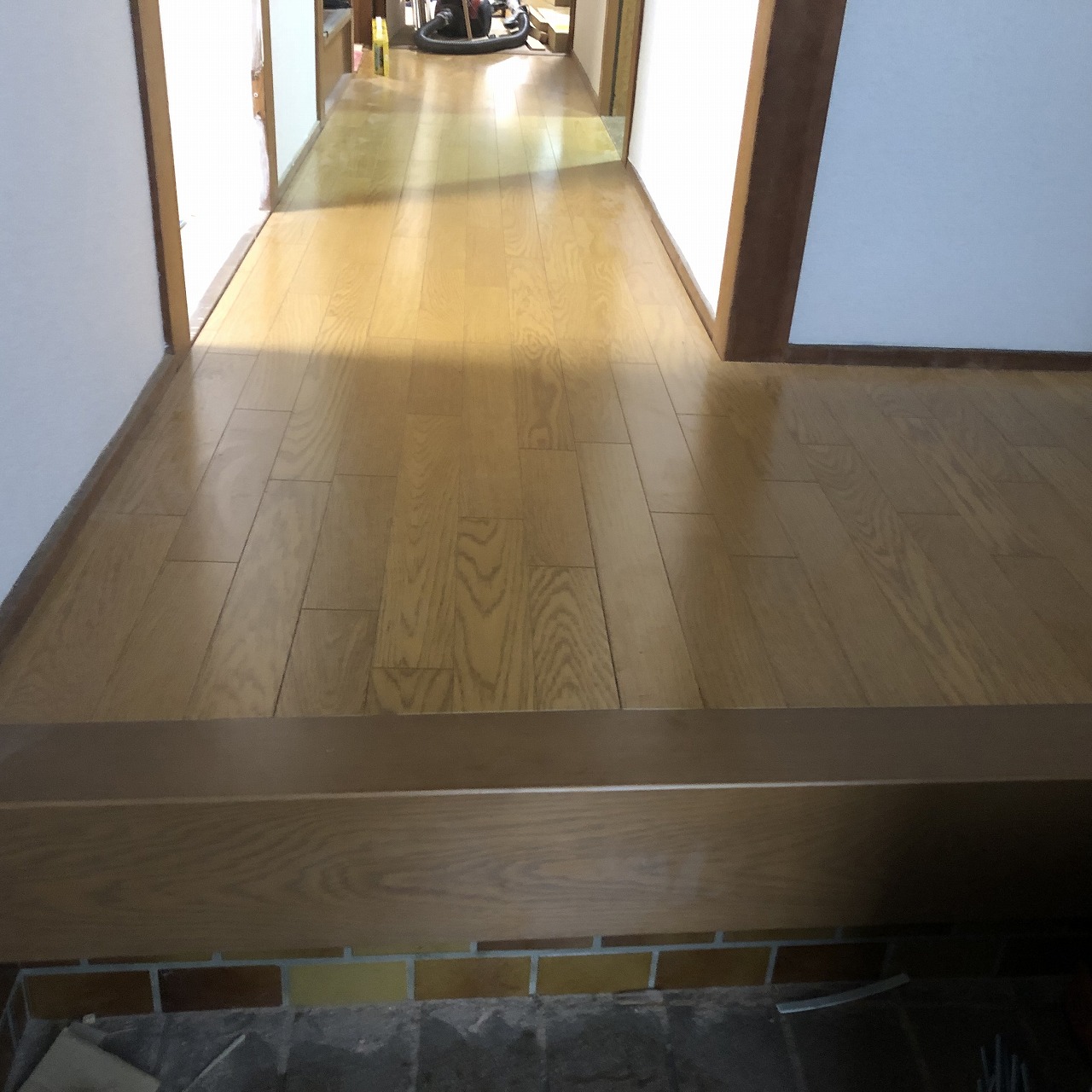 玄関の框(かまち)から廊下部分をフローリングで一新しました。