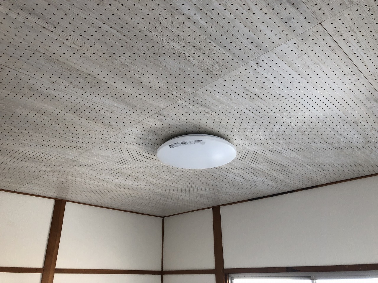 電気工事の作業のため天井裏に入ったのですが天井板がボロボロでしたのでいっそのこと全部張り換えました。
