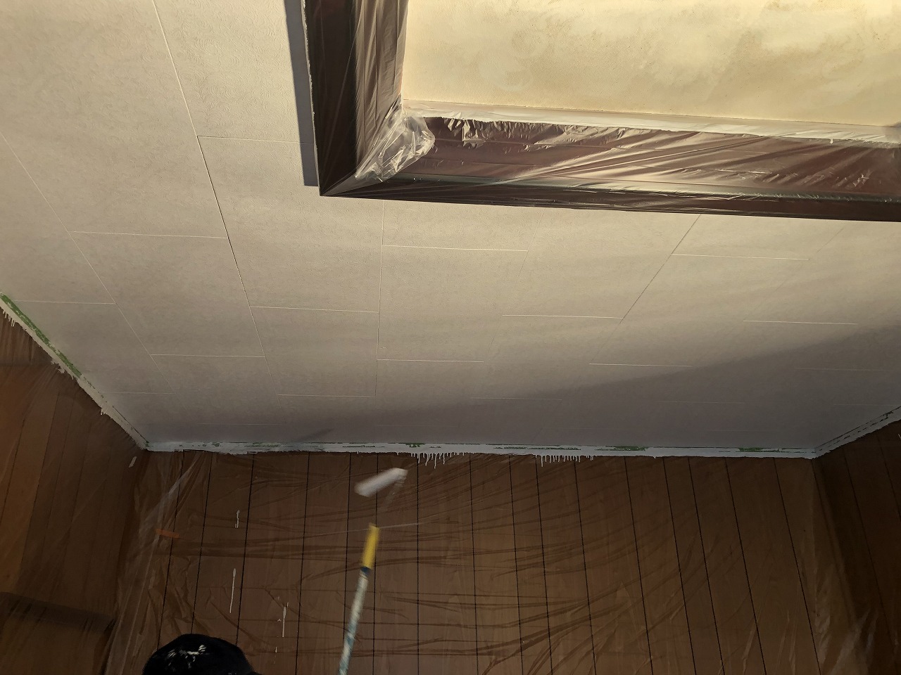 施工内容が床の増し張りと、天井塗装のため早い段階での作業工程としました。
