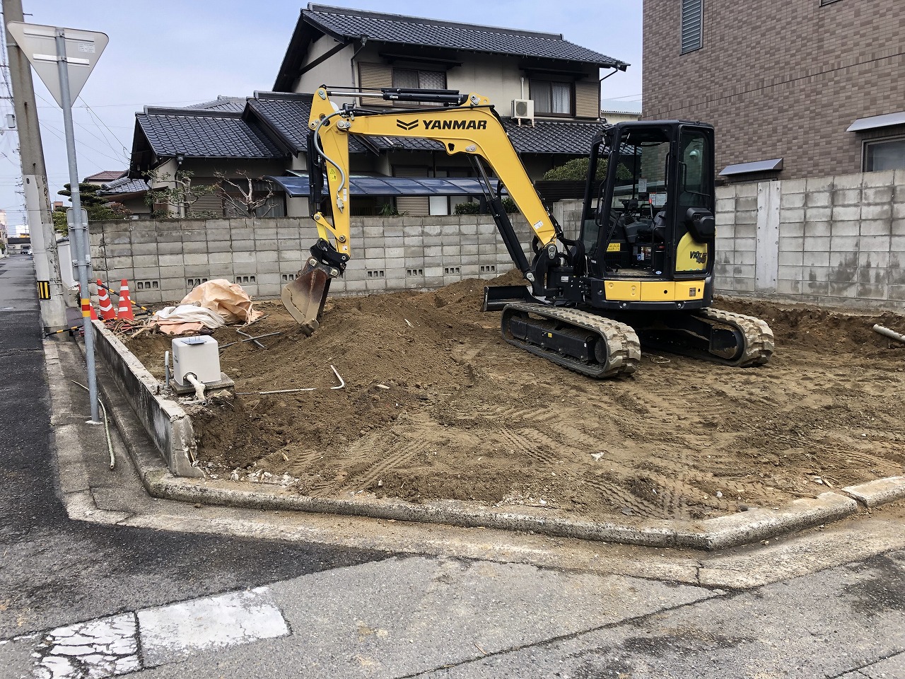 路床掘削・残土搬出・ブロック塀撤去