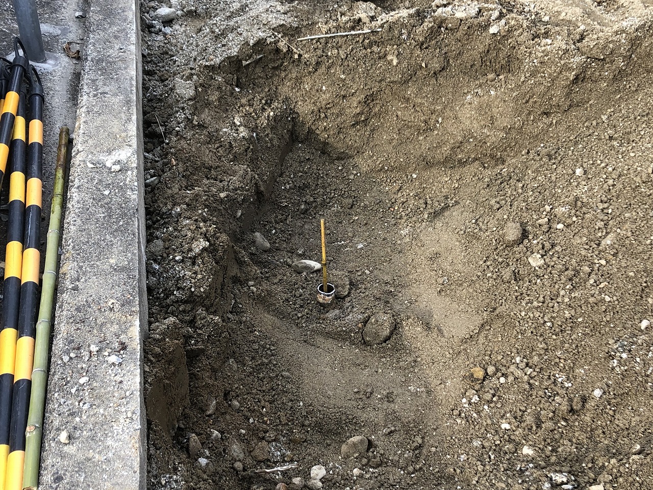 打ち抜き井戸があり、ちょうど車の出入りする場所であったので井戸の埋戻しが必要でした。