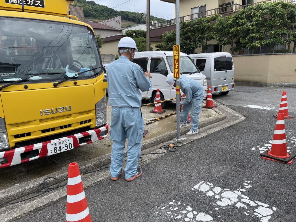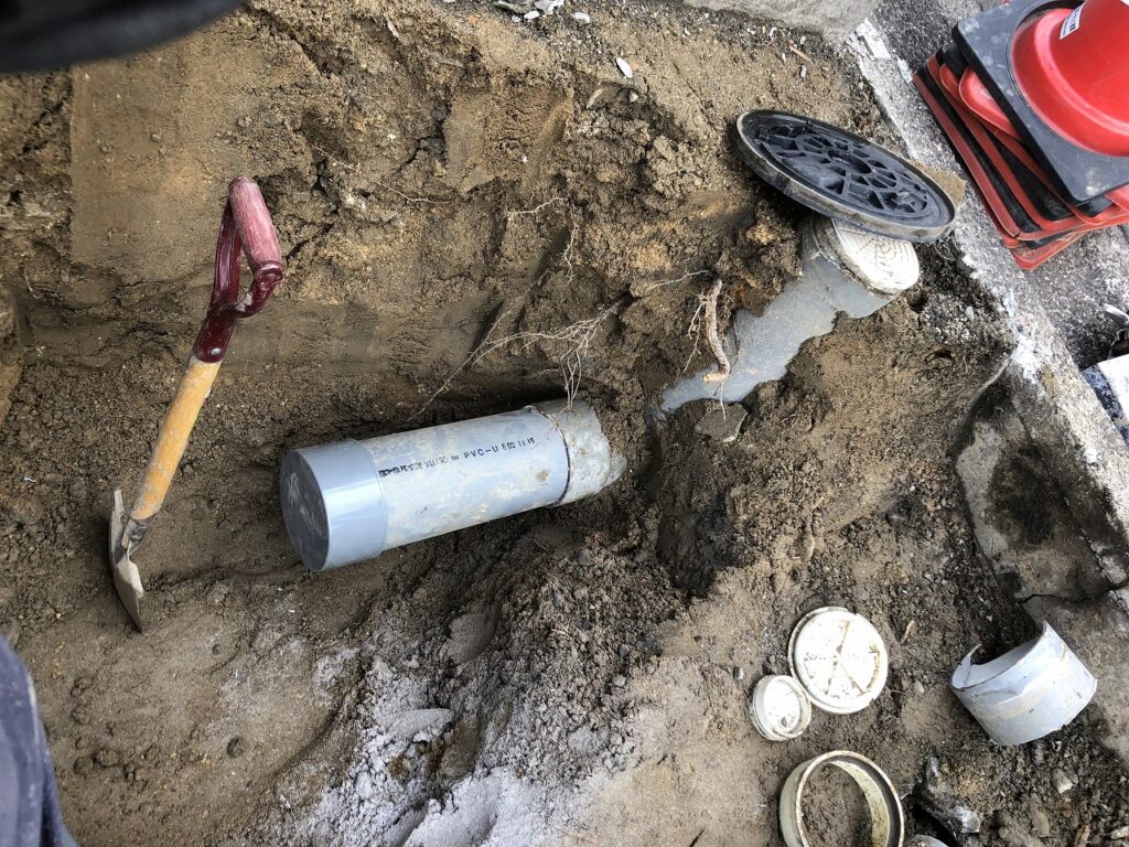 下水につながっているので万が一後々再度利用できるように最終桝を残して排水管の処理を行い埋め戻します。