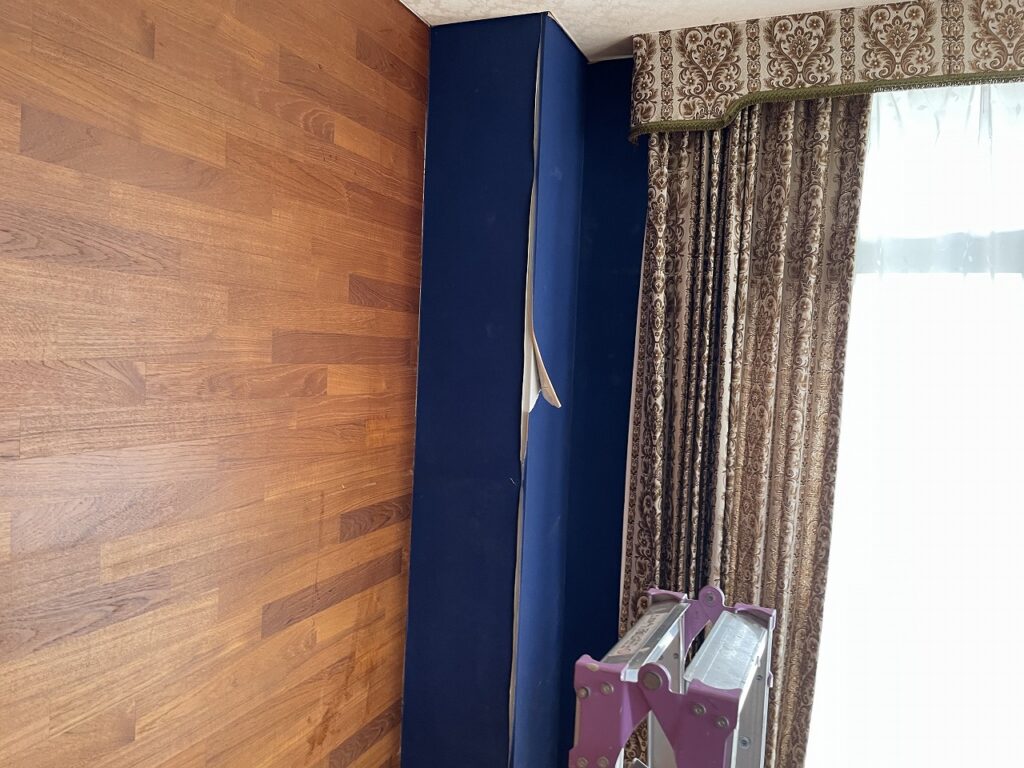 既存のクロスを慎重に剥がしていきます。裏紙と言われる部分が雑に塀でしまうと新しく張ったときに段差ができたり既存の裏紙が浮いてしまって定着が悪くなることがありますので丁寧にはぎ取っていきます。