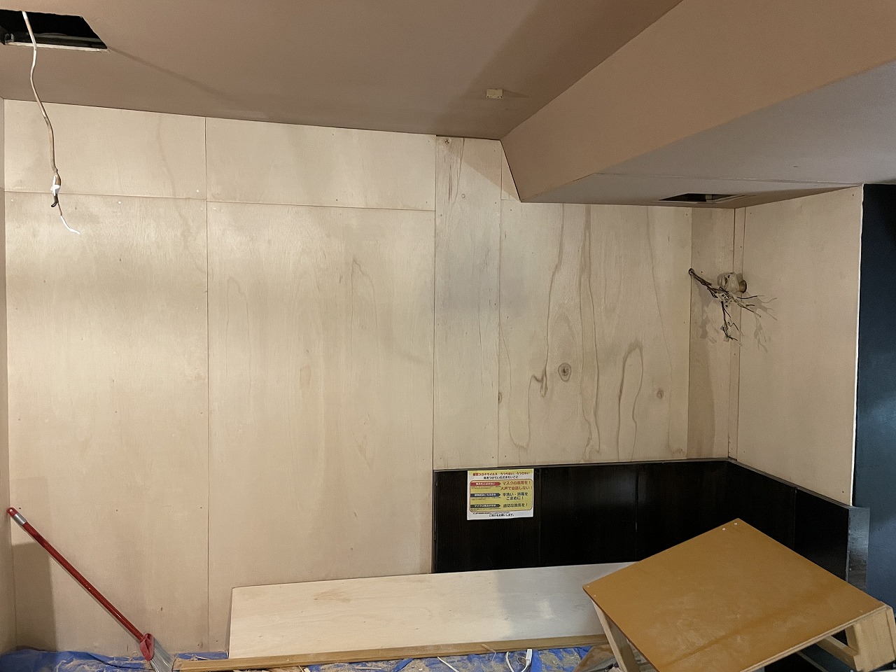 今回は壁にポスターを張れるように木合板の下地に変更します。