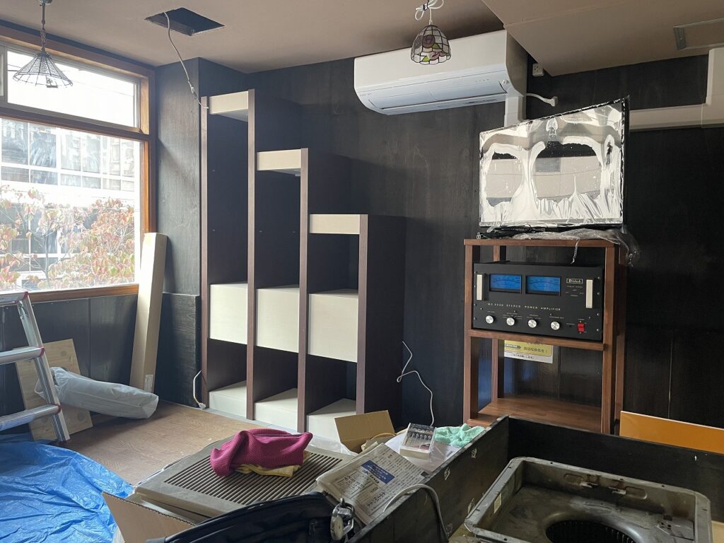 大部分の工事が終盤に差し掛かったところで大きい什器やレコードプレーヤーなどをお施主様手配にて搬入しています。