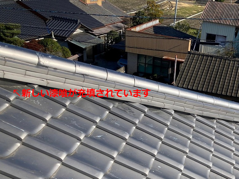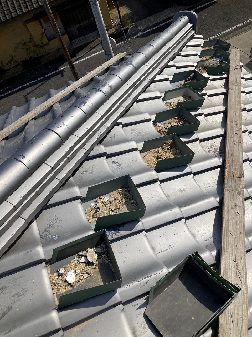 漆喰の撤去が終わりましたら写真にはありませんがすべての部分の隅棟に再度漆喰を充填していきます。