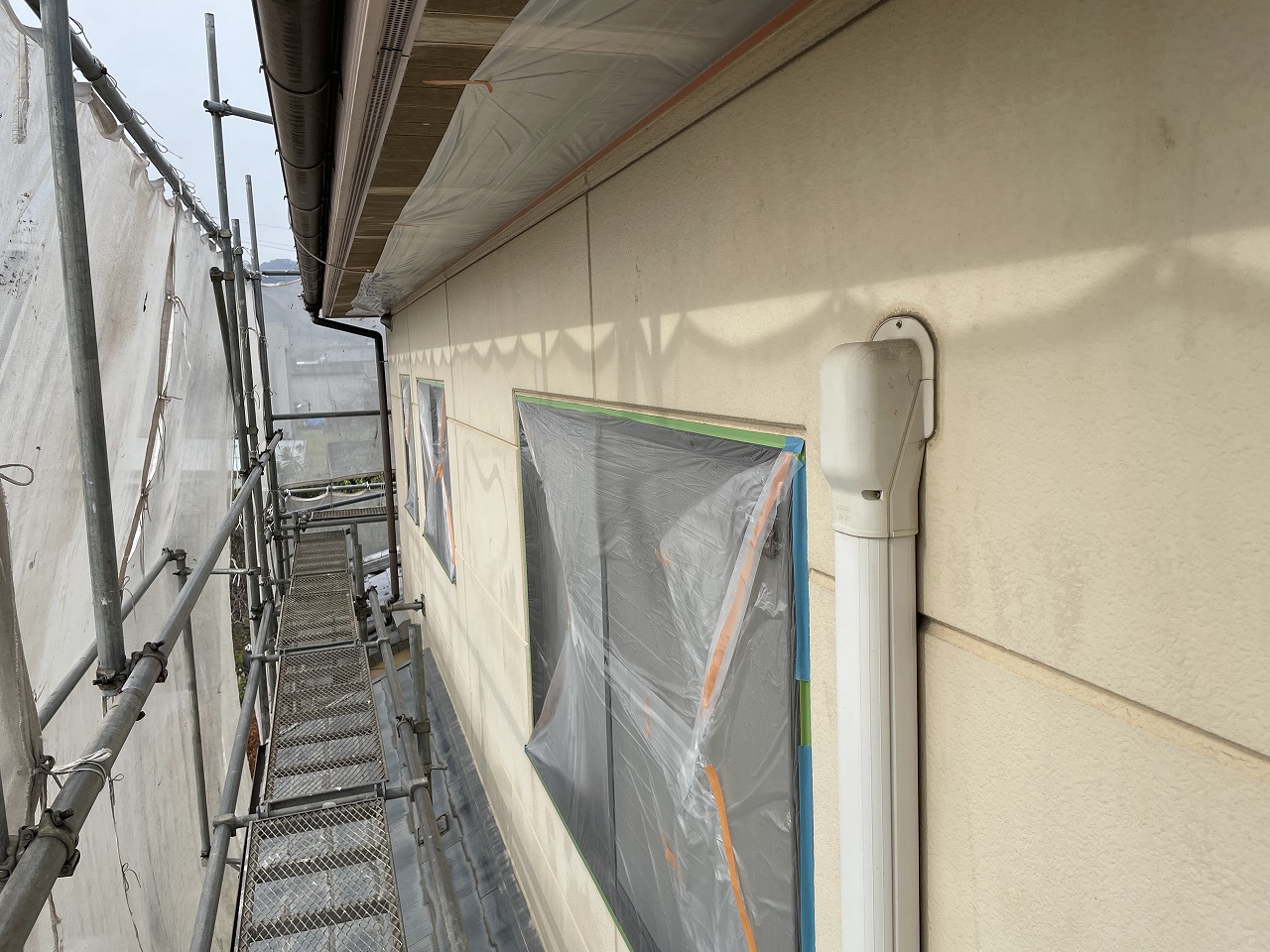 高松市 M様 外壁塗装工事 今回は前回に引き続き別の建屋(書庫)の塗装工事と軒天の材料が非常に傷んでいたため上張りでの軒天張りのご依頼をお請けいたしました。 それと樋が詰まって水が溢れてくるので工程内で水洗いの工程でといの清掃も行いました。 外壁塗装工事前 BEFOUR 現地調査・足場設置 母屋の足場材を解体後そのまま使用したのでもうすでに足場を設置しています。 外壁塗装工事開始 高圧洗浄 水洗いを済ませて養生していきます。 樋の清掃を高圧洗浄機で行いましたが落ち葉に砂などが大量に集まっており水が流れなくなっていましたが確実に清掃したので問題なく流れるようになりました。 軒天工事 今回も外壁の塗装工事のみでしたので塗装が完了次第、養生を撤去して軒天を張っていきます。 軒天工事完了 1階2階の軒天もご覧のようにきれいに仕上がりました。 外壁塗装工事完了 塗装工事と軒天工事が完了しました。 雨どいの水もあふれることがなくなりまたしあがりも大変満足されていました。 2024年1月19日工事実績塗装工事,外壁塗装工事,防水工事