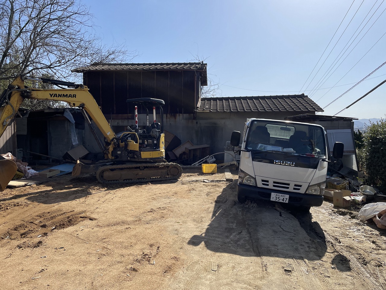 手前側に建っていた木造家屋がなくなりましたのでダンプを手前までつけて搬出していきます。