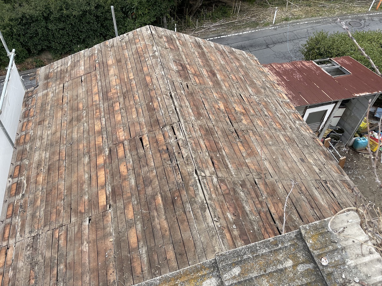 崩落しているところもあるので屋根下地の強度を確認して慎重に作業を進めます。