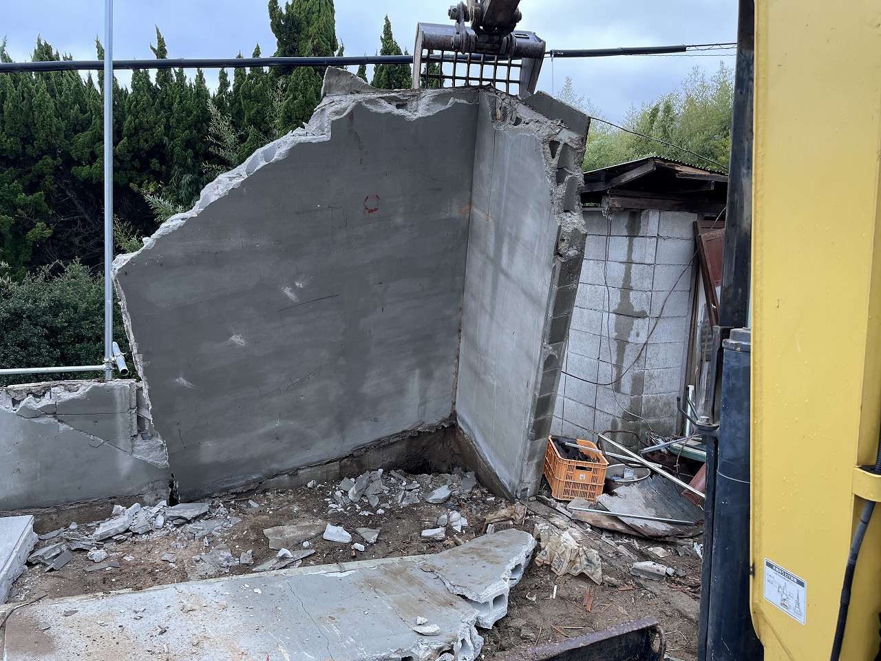 屋根材の撤去が終わりましたら本格的に重機で解体していきます。