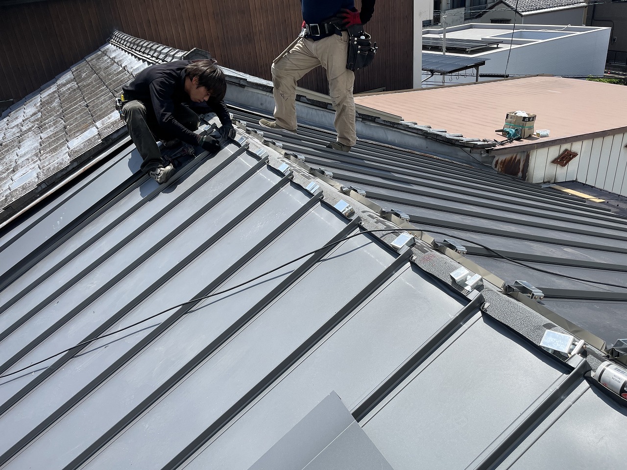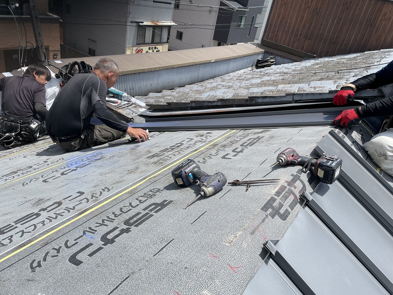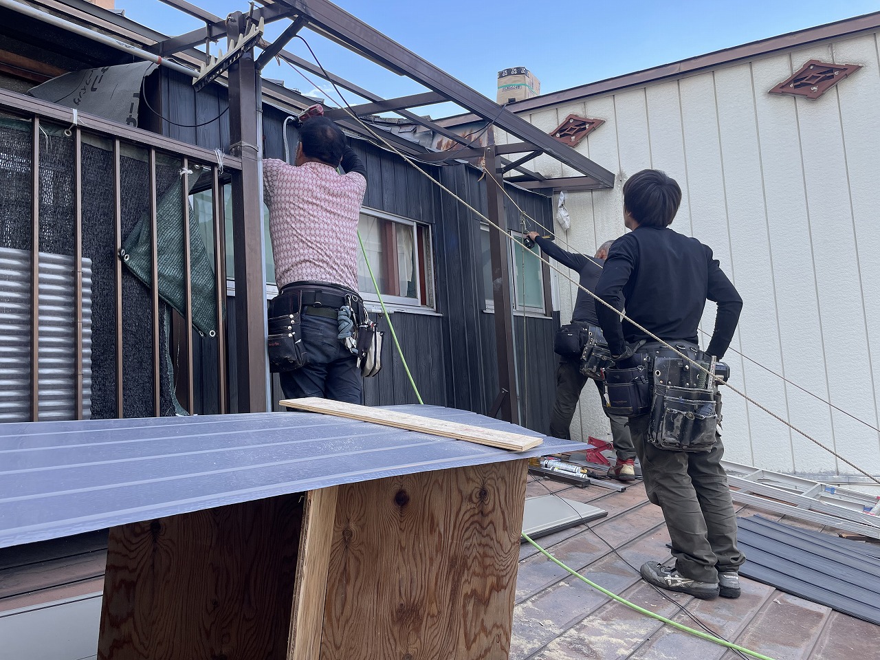 塗装のかたわらで屋根工事も同時に進行していきます。