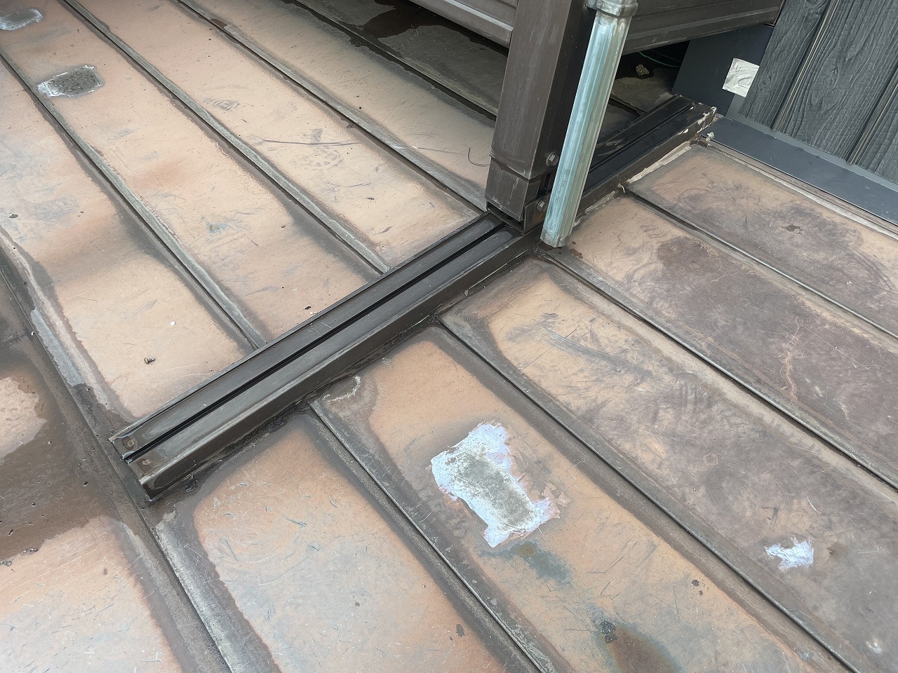 原因は以前に別の業者が行った工事の部分でベランダの支持柱の基礎部分から雨漏りが発生していました。