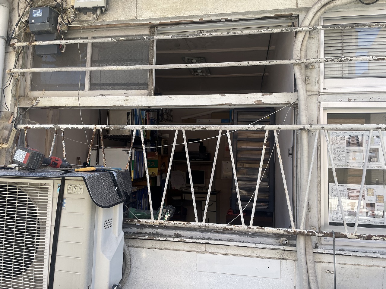 工事の順番としてはまずサッシの入れ替えを優先して行いました。古い木枠窓を枠を残して撤去します。