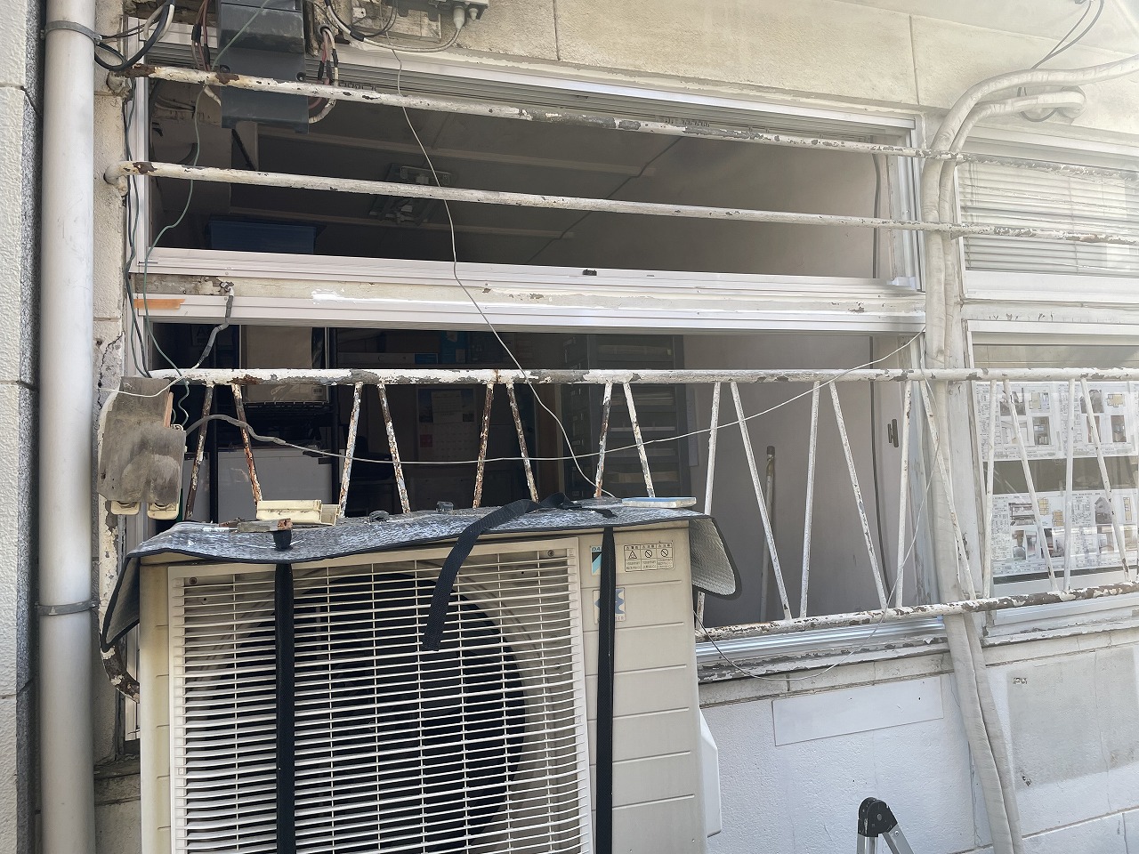 今回は弊社とご好意にさせていただいている不動産会社様からのご依頼で雨漏りがしているので修繕してほしいのと店舗前面の塗装工事のご依頼をお請けいたしました。
