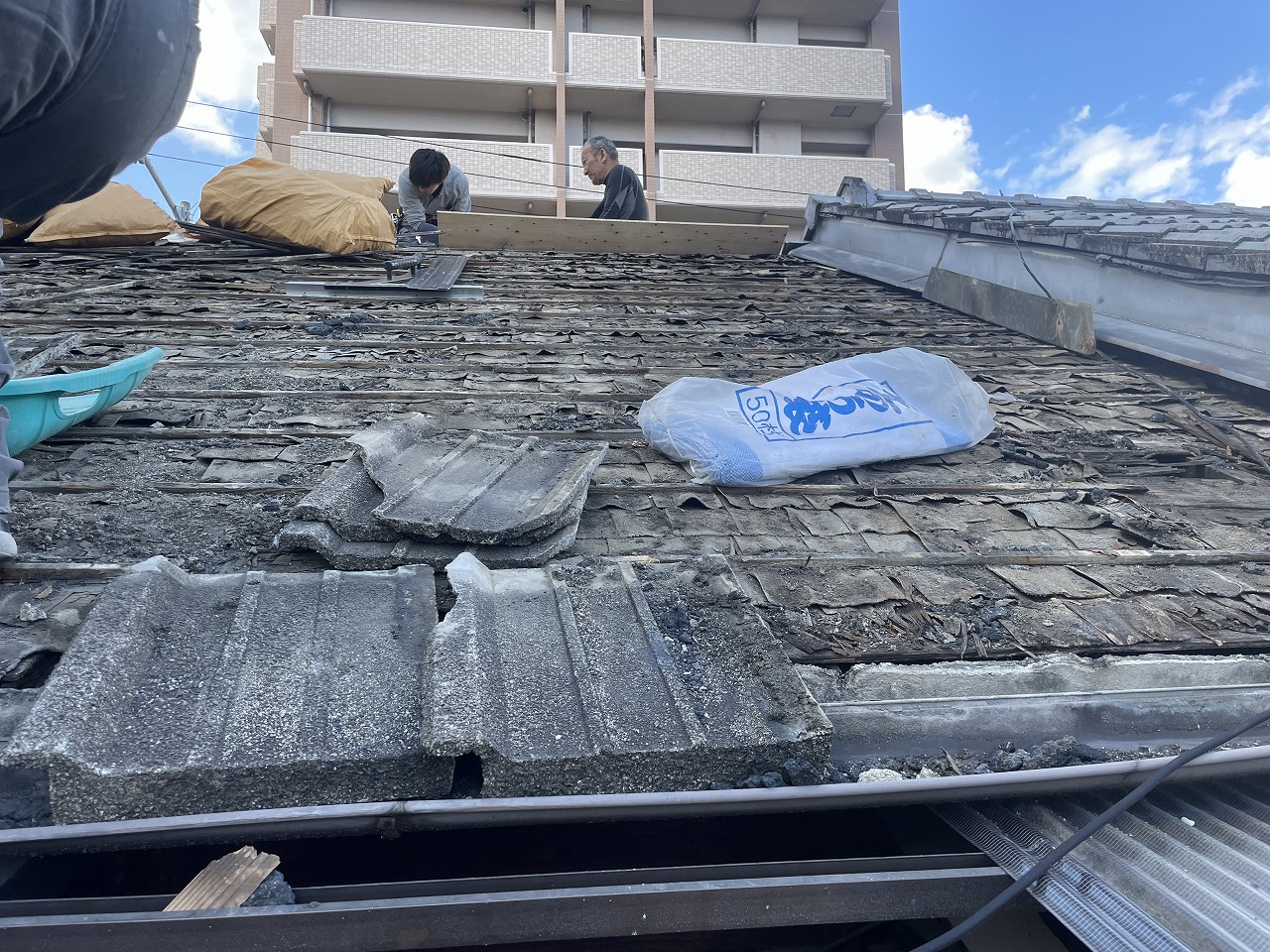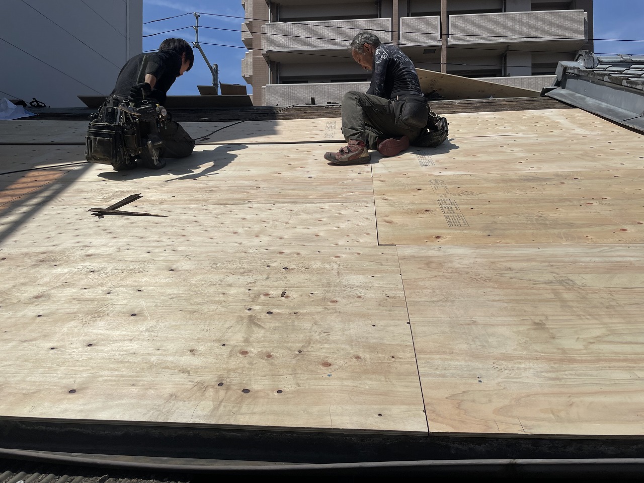 既存の瓦を撤去して不要な下葺材も撤去します。