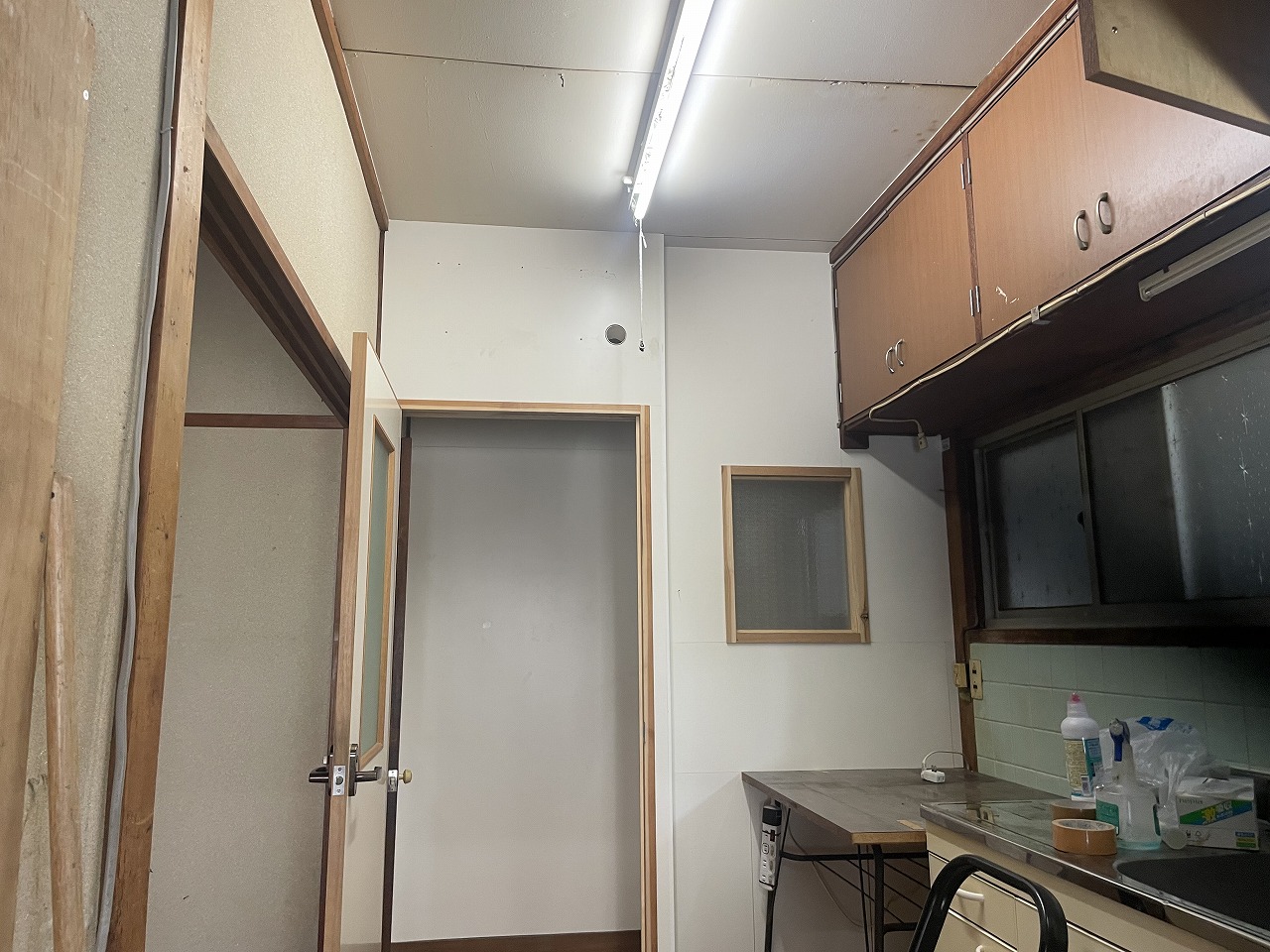 こちらは厨房キッチンになります。業務用冷凍庫・エアコン・神棚等を撤去したところです。