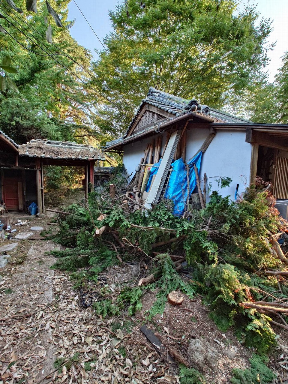 まずは建屋周辺の壁からはみ出した枝の伐採です。