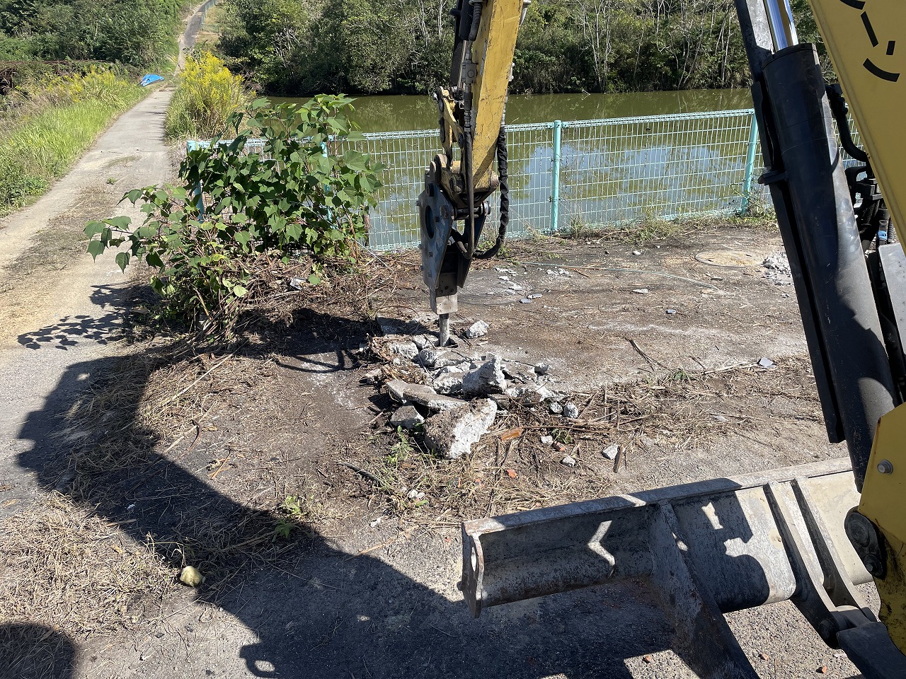 周囲の清掃を行い、重機を引き上げ、お施主様と県の担当者様にチェックしていただいてお引渡しとなります。