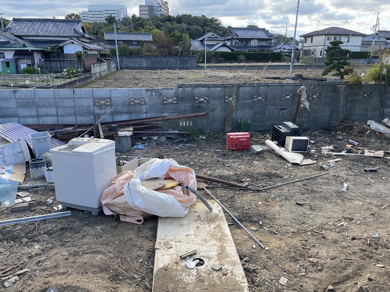 お施主様が若い時にお住まいされていた住居で現在は近くの戸建ての木造住宅にお住まいされていて、誰も住まなくなった家屋が老朽化や雑草が生えたりして問題が発生しているので解体することになりました。